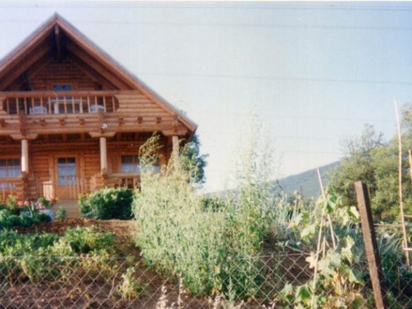 Δυόροφη ξύλινη κατοικία με ολόσωμους κορμούς