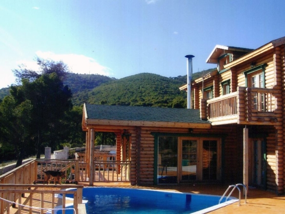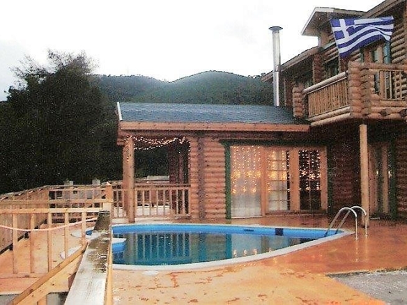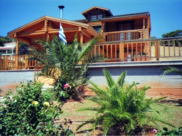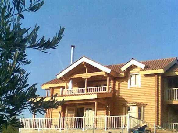 Δυόροφη ξύλινη κατοικία με ολόσωμους κορμούς