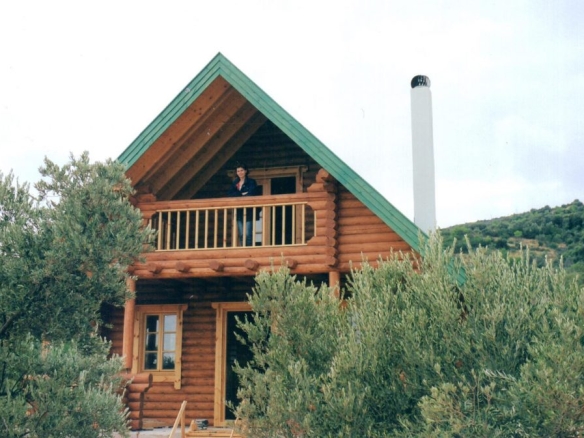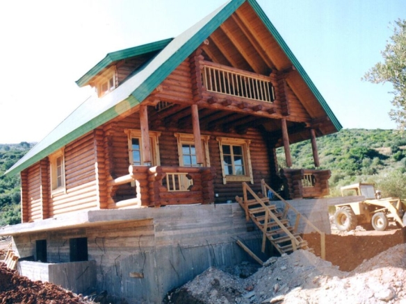 Δυόροφη ξύλινη κατοικία από ολόσωμους κορμού